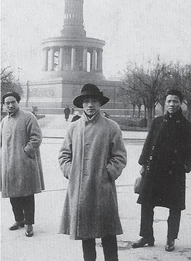 1923年,李金發(左)與林風眠(中)、林文錚(右)在柏林