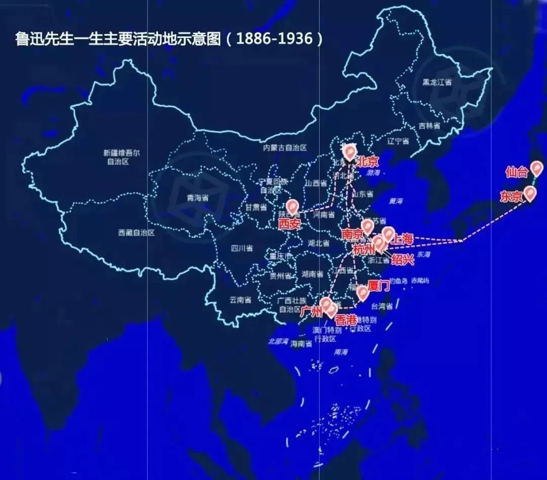 在魯迅的文學人生中,北京處于一個什么樣的位置呢?北京是魯迅除了他的出生地紹興之外居留時間最長的城市,前后加起來長達14年之久。以下是魯迅在幾個主要城市的停留時間:南京將近四年;東京六年;仙臺一年半;杭州十個月;廈門四個月;廣州三個月;上海九年。紹興是他的故鄉,如果要從他出生就開始計算,當然時間是最長的,達十七八年。其他如1924年在西安講學將近一個月;香港一共去了三次,包括從香港借道去上海。所有這些城市中,除了紹興還是在北京的時間最長。所以說北京值得特別的觀察,特別的討論。