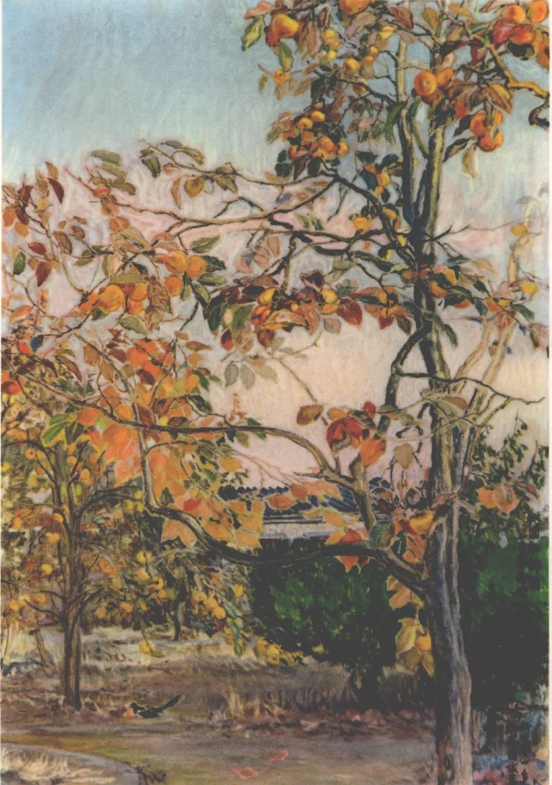 《秋庭紅柿圖》,1957年深秋,司徒喬第三次來到北京所繪。