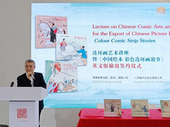 簽約儀式當天,由人民美術出版社主辦的“獨具中國特色的藝術之花”連環畫藝術講座也在倫敦書展舉辦。