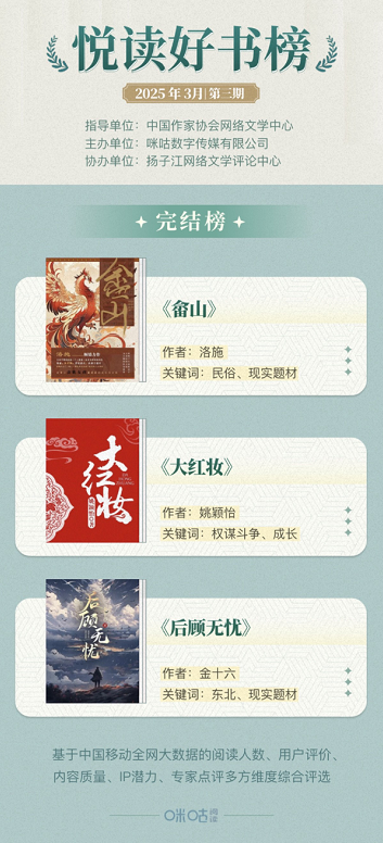 咪咕閱讀第三期“悅讀好書榜”發布,網文IP改編劇占口碑榜超70%