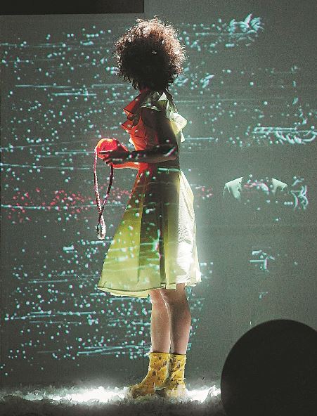 在《1033》的舞臺上,雖然影像營造的夢境是豐富且光怪陸離的,但整個劇目只有兩位演員飾演的兩個角色:女主人和她的狗狗。兩位演員非常投入,無論是肢體語言溝通還是對白互動,表情生動、動作絲滑、配合默契,將一位“追求夢想”的女主人和一只“善解人意”陪伴左右的寵物狗塑造得鮮活而有個性。這兩個角色在劇情推進中相互獨立又相互輔助,不分主次,構成了獨特的二元敘事模式。