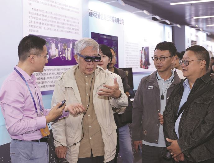 2024年9月24日,中國作家協會和中國科學技術協會共同主辦的“科幻科普作家活動周”期間,科幻科普作家們一同參觀中國科學家博物館。圖為科幻作家王晉康使用展覽中的實驗裝置。