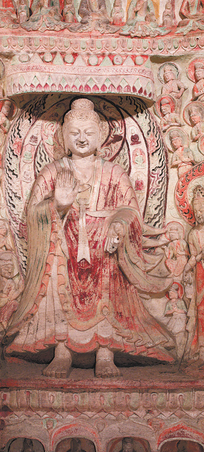 隨著人口的遷徙,平城成為胡商梵僧云集之地、北方佛教的新中心。一批批高僧大德和能工巧匠不僅帶來了精湛的雕刻技藝,更將古印度、涼州、關中等地佛教藝術風格和造像理念帶入平城,與本土工匠共同創作出不朽的藝術作品,呈現鮮明的時代風格。
