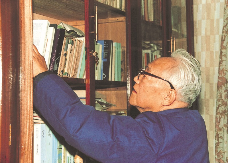 巴金在家中整理要捐贈給中國現代文學館的圖書