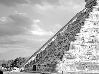在美洲,古瑪雅人不僅為后世留下了復雜的文字體系,其天文和歷法系統也十分成熟,這在古瑪雅建筑中有直觀的體現。古瑪雅的城市建筑包括宮殿、天文觀測臺、金字塔神廟等。在墨西哥尤卡坦半島瑪雅遺跡奇琴伊察的中心,有一座瑪雅文明鼎盛時期的金字塔建筑,即卡斯蒂略金字塔(也稱為庫庫爾坎金字塔)。它是祭祀羽蛇神的神廟,羽蛇神在古瑪雅文明中是太陽的化身。該金字塔底座為正方形,四個坡面上的階梯朝向正南、正北、正東和正西四個方向,四面的臺階各有91階,加上最頂部的一層共計365個臺階,正好是哈布歷(以365天為周期)中一年的天數。52塊有雕刻圖案的石板象征著瑪雅日歷中以52年為周期的輪回。每當春分與秋分日,日出或日落之時,金字塔拐角的輪廓在北面階梯上的投影如同蛇身,與階梯底部的羽蛇神頭像正好相連,形成完整的蛇形圖案,這一切顯然都經過了精心的計算和設計。古瑪雅人極為重視天文數據,金字塔的設計處處呼應天文和歷法的數字規律,體現出古瑪雅文明的宇宙觀念。