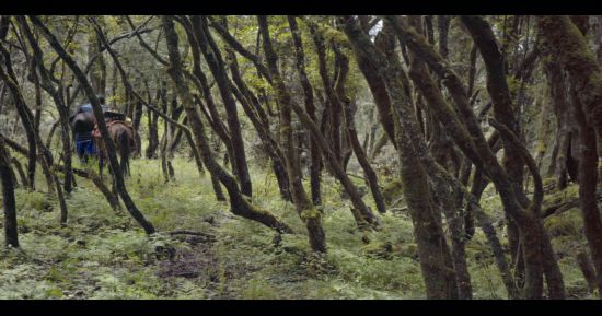 后半夜下了一點小雨,次日,羊槽子變得格外清澈、透亮,此時正是八月,夏天似乎還很漫長。一大早,沙馬伍颯跟吉克拉哈就來到村民家中借馬,“你們家的馬,可以借我們拍一下戲嗎?拍完了給你們一點借馬的錢”,而與他們交流的村民,是馬的主人,她認為她家的馬并不合適:“我們家的馬還沒有馴好,怕是勝任不了”,吉克拉哈趕忙解釋:我們不拿來騎,就是拉著它走一下,講述“一個彝族畢摩阿普(老畢摩)從別人家做完儀式回來,牽著馬路過森林”這么一段戲,就拍攝可能一分鐘不到的視頻,幾個鏡頭就完了。