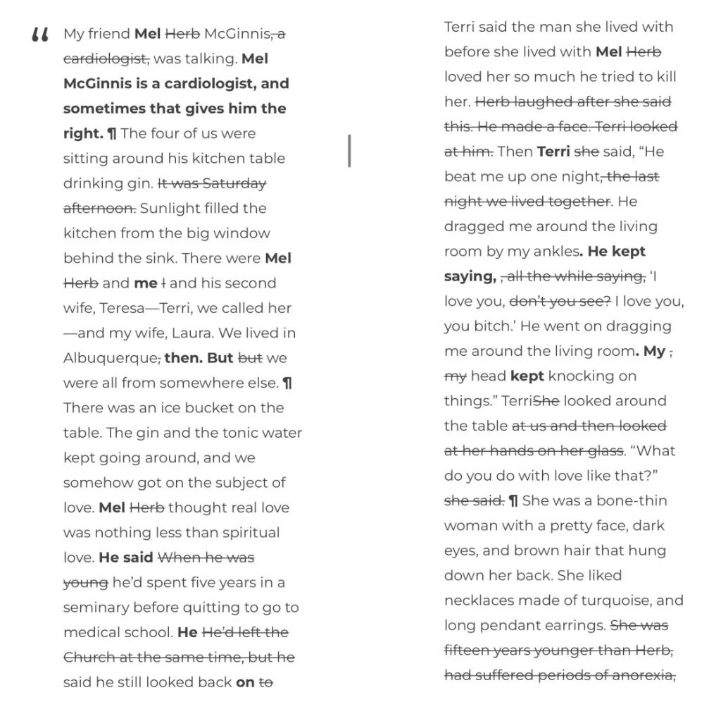 你知道,卡佛不是唯一一個被我這樣對待的。我可能在他寫的東西上投入了更多精力,是的,投入程度從一個短篇在一天當中改四五遍可見一斑。我在周末也這樣工作。不僅僅是對雷的作品這樣改。我也靠給書“治病”謀生,因為《時尚先生》的薪水遠遠不夠用。我會從麥格勞-希爾或哈考特·布雷斯出版社接活——接這類活的好處之一是他們通常會為某一本書預付一筆金額可觀的錢,這種書如果不經過大量修改,他們就沒法出版。但結果并不總是令人滿意的。最后總是有一種不好的感覺,瘋狂的感覺,尤其是做那種代筆的工作時。我不記得這種工作我究竟干了多少,但結局不算壞。