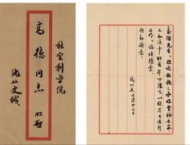 1978年沈從文從歷史博物館調至中國社科院工作,寫給高德二信,都與處理相關工作問題有關。沈從文書信中有不少這類寫給各級領導的信,一般除了陳述工作方面的情況及相關需求外,便是請求在生活上有所照顧,特別是住房問題。高德在沈從文相關資料中也尚屬首見,而關于高德的資料則極少,目前筆者僅查閱到《復旦學報》1990年第3期所刊《中國社會科學院科研局負責人高德致譚其驤的信》,由內容可知,高德曾是譚其驤的學生,此信是為譚其驤賀壽。從此后升任的“科研局負責人”大致推測,高德當時在社科院應該也屬于中下層領導,相比之下級別及權限也不及沈從文書信中涉及到的其他領導,故而沈所申也都是比較具體的工作問題。