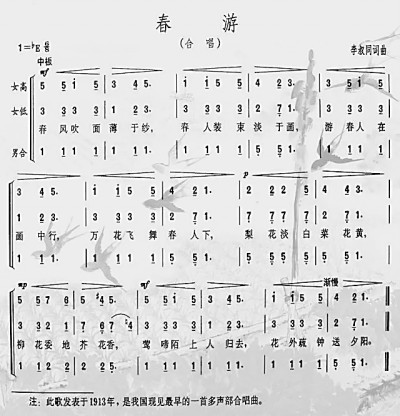 李叔同發表于1931年的《春游》,是我國現見最早的一部多聲部合唱曲。
