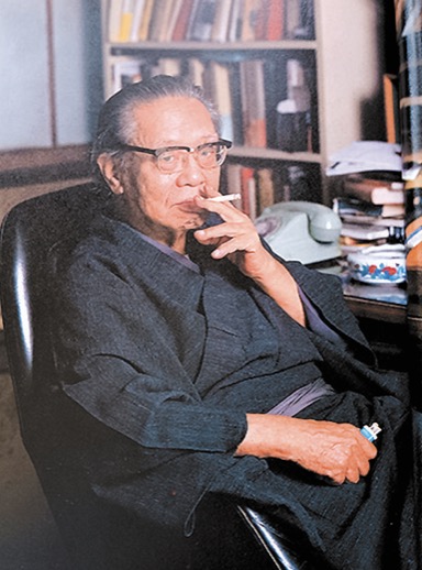 松本清張穿著深藍色的和服走進來。他沒有認出我,依次和大家握手后坐下來,興致勃勃地談起了中國的唐詩宋詞和永樂大典,之后領我們參觀他的藏書樓和書房。