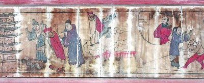 溫州蒼南縣碗窯村上窯三官廟戲臺上的“水漫金山”主題彩繪