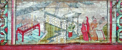 溫州永嘉縣北溪村楊氏宗祠戲臺上的“三顧茅廬”主題彩繪