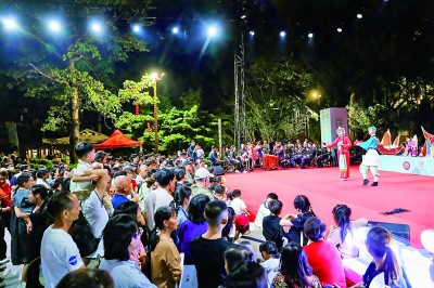在福建泉州,戲曲展演走上街頭、走進社區。趙鵬超攝/光明圖片
