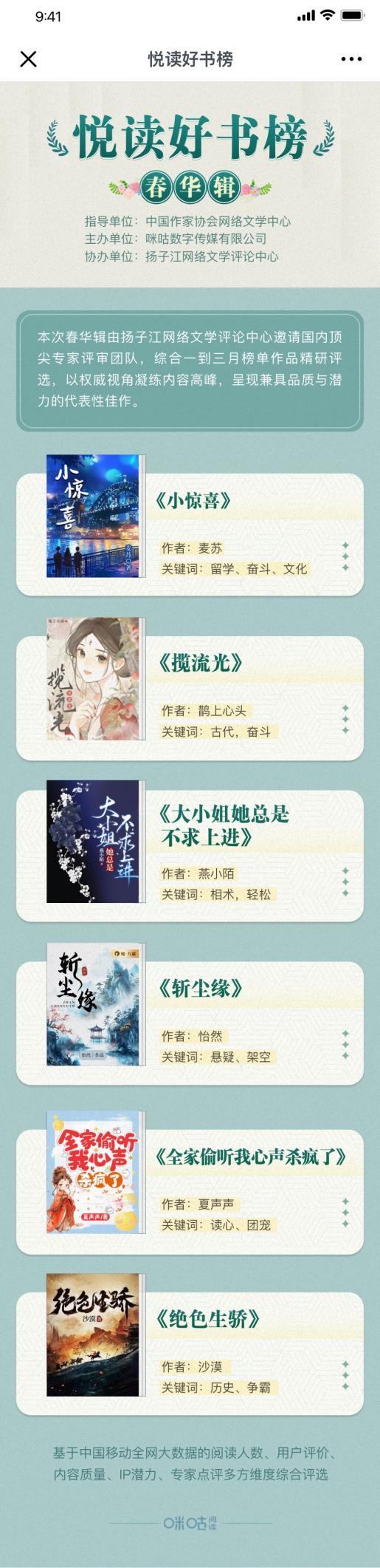 網文類型創新與時代價值同頻共振,咪咕“悅讀好書榜”第五期榜單揭曉