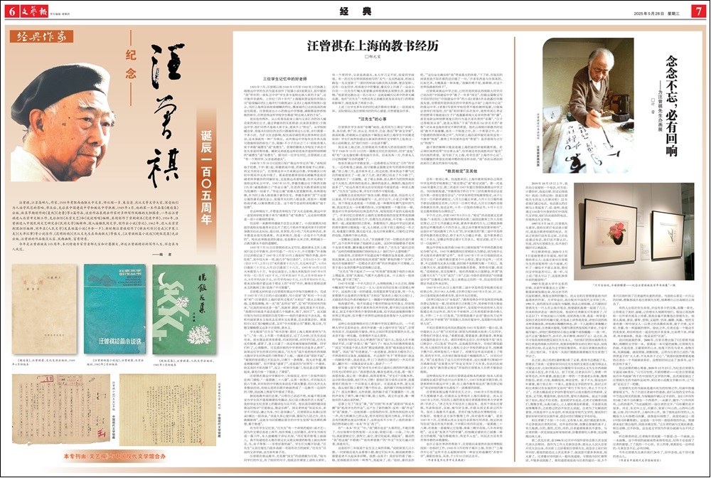 汪曾祺,江蘇高郵人,作家。1939年考取西南聯大中文系,師從聞一多、朱自清、沈從文等文學大家,深受他們為人治學風范的影響。畢業后,先后在中國建設中學和致遠中學執教。1949年4月,他的第一本作品集《邂逅集》出版,收錄早期創作的《復仇》《老魯》等8篇作品,這些作品表現出作家對多種寫作風格的大膽探索。一年后汪曾祺進入北京市文聯工作,先后擔任《北京文藝》和《說說唱唱》編輯,其間創作了京劇劇本《范進中舉》。1954年,汪曾祺進入中國民間文藝研究會《民間文學》編輯部,深入接觸民間文學,創作出小說《登記》。1962年,進入北京京劇團擔任編輯,同年在《人民文學》發表短篇小說《羊舍一夕》。新時期汪曾祺創作了《騎兵列傳》《受戒》《歲寒三友》《大淖記事》等小說佳作、《昆明的雨》《沈從文先生在西南聯大》等散文,《汪曾祺短篇小說選》《晚飯花集》先后出版。汪曾祺的作品散淡從容、風趣幽默、富有詩意。 今年是汪曾祺誕辰105周年,本刊特邀專家學者郜元寶和計蕾撰文,評述汪曾祺精彩的寫作人生,懷念其為人風范。