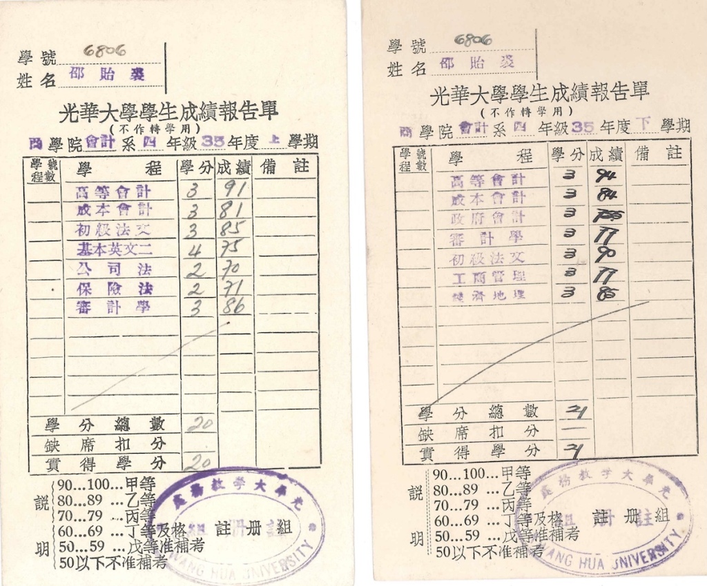 所以,我們只能說邵貽裘與光華大學再續前緣,其實是在經過一番輾轉與尋找后,邵貽裘最終確定光華大學商學院會計系才是他的理想選擇,從此他全身心投入其中,也一定能再次找回那個“學行、成績均屬優良”的光華學子。以后的情況正如我們預料的那樣,邵貽裘“學習頗有成績”,并且以學生身份擔任光華大學商學院會計系助理,在他大學畢業的1947年12月,“因學習成績優良,本校留用,擔任光華大學商學院會計系專任助教及講師職”。從1937年8月轉學到光華大學附中初二年級,到1947年底成為光華大學商學院講師,邵貽裘用十年時間完成了由光華學子到光華教師的身份蛻變,也從一位懵懂無知的少年變成了一名風華正茂的大學講師。