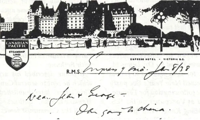 白求恩1938年1月8日啟航中國留言(加拿大白求恩故居紀念館藏)
