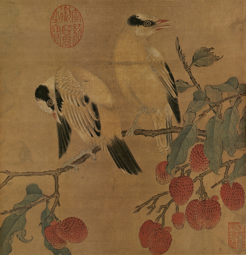 宋代《離支伯趙圖》是一幅典型的南宋院體花鳥畫,現藏于臺北故宮博物院。紅黑大膽對比,設色妍麗,用筆細膩。該畫以荔枝和伯勞鳥(伯趙)為主題,展現了宋代宮廷繪畫的精湛技藝與象征寓意。諧音“利枝”或“離支”,象征“吉利”或“連理”,在宋代宮廷文化中常被賦予富貴、祥瑞的寓意。伯勞鳥:在古代被視為“報喜鳥”,與荔枝結合,可能暗含“報喜”“大吉”之意。