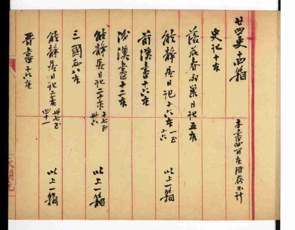 幸運的是,南京圖書館藏有趙烈文次子趙寬(1863—1939)所編《小脈望館書目》五冊,該書目半葉十行,由趙寬手抄,在第五冊“貞”字號中的“廿四史十四箱”中,完整著錄了趙烈文日記的信息(圖1),如下:一、《落花春雨巢日記》五本、《能靜居日記》十六本(一至十六),二、《能靜居日記》二十本(十七至卅六),三、《能靜居日記》五本(卅七至四十一),四、《能靜居日記》十三本(四十二至五十四),五、《重抄落花春雨巢日記》一本,又《能靜居日記》八本(一至八),六、《重抄能靜居日記》廿二本(九至卅),七、《重抄能靜居日記》廿四本(卅一至五十四)。該書目全部圖書總計兩萬兩千九百五十八本,如此數量的藏書,當然不可能全部是趙寬自己入藏的,其主體部分應該是其父趙烈文天放樓的藏書。那么,這里對于趙氏日記的記錄,無疑是可靠的。首先看《落花春雨巢日記》,有兩個版本,“五本”即現藏南京圖書館的五冊本,該本是趙烈文的手稿本,卷首有“毗陵文獻征存社”等印,涂抹不少;“重抄”本一本,即南京圖書館的一冊本,同樣也有“毗陵文獻征存社”等印,這冊的最優長之處,乃是從咸豐二年正月初一日開始,比趙烈文的手稿本要完整。其次是《能靜居日記》,書目中記載了兩種,都是五十四冊,從“重抄”云云看,這兩種都是對后來流傳到臺灣的趙氏手稿本的重新抄寫,只是不清楚孰先孰后,但可能南京圖書館所藏的五十四冊,即李文所言經由沈先生手入藏的,乃是后一部“重抄”本。趙寬《小脈望館書目》最后一冊“碑刻目”末有“乙亥年立夏日記”一行,即民國二十四年(1935),這說明,在此時,趙氏的兩種日記的稿鈔本仍屬趙家所有。