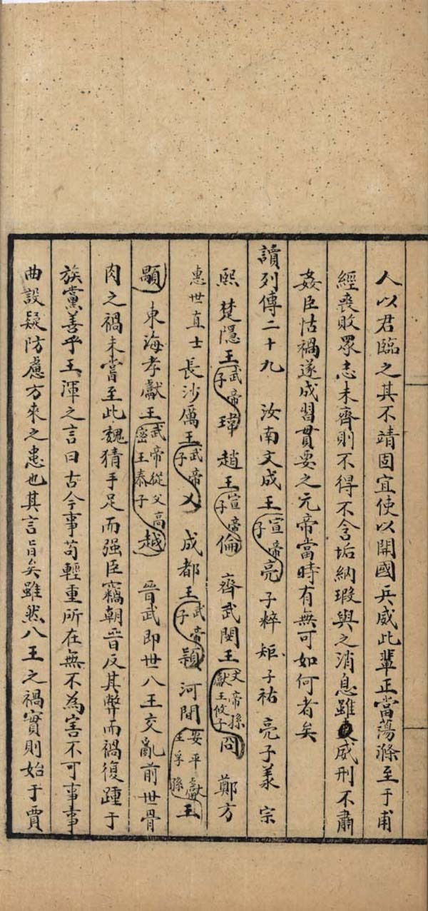 趙寬的校改,往往用墨筆直接施于日記正文的字里行間,如第十五冊同治元年七月十八日“讀《列傳》二十九”,原抄作“汝南文成王宣帝子亮”“楚隱王武帝子瑋”“趙王宣帝子倫”等,趙寬將小字夾注均勾乙到帝王名外(圖3),檢趙烈文手稿本即如此,應是抄手不明史書體例而誤。還有直接改錯字的,如第十七冊將“郭芝仙”的“芝”字圈出,旁改為“蕓”。最能證明南圖此本不是趙寬所抄的直接證據,就是第十八冊同治二年八月初六日的天頭上,因為抄手漏抄了一大段趙烈文初五至初七日的讀書內容,趙寬便在天頭一一補抄,末了還不忘批了一筆:“以上散失,在初八日前,鈔胥可恨!”(圖4)以表達對抄寫者的不滿。還有一個旁證,第二十三冊書根處,趙寬還寫了“此冊已前共計抄公應有本六千文還三元”一句,這明顯是對抄寫工價的記錄。故陳文所云的“趙寬錄副”恐怕不實,還是以筆者此前所稱的“能靜居鈔本”較為穩妥。