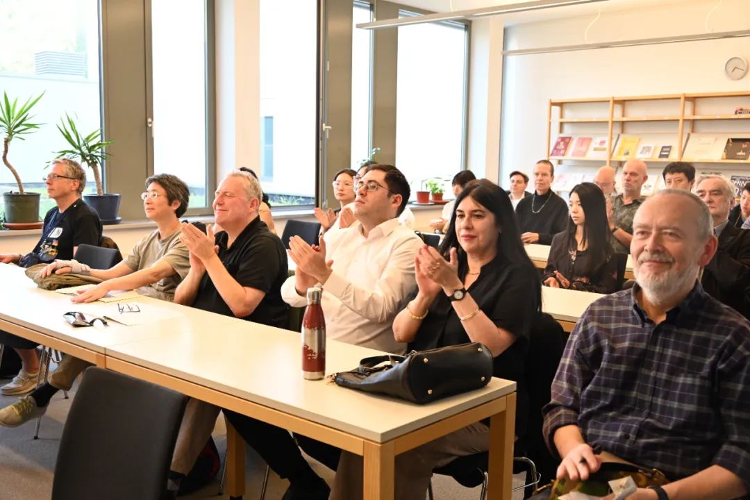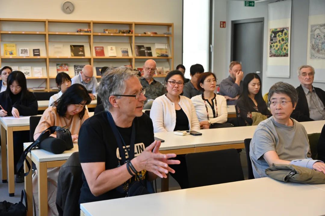 在詩歌鑒賞活動的最后,進入了熱烈而富有深度的互動交流環節。來賓們圍繞中德語言間的可譯性、屈折語和分析語的表達差異、文化與詩歌節奏的異同,以及中國現代詩歌與古典傳統之間的承續與轉化展開了積極討論。在場的詩人們也紛紛分享了他們在創作中如何面對語言邊界、文化背景與表達方式的挑戰。