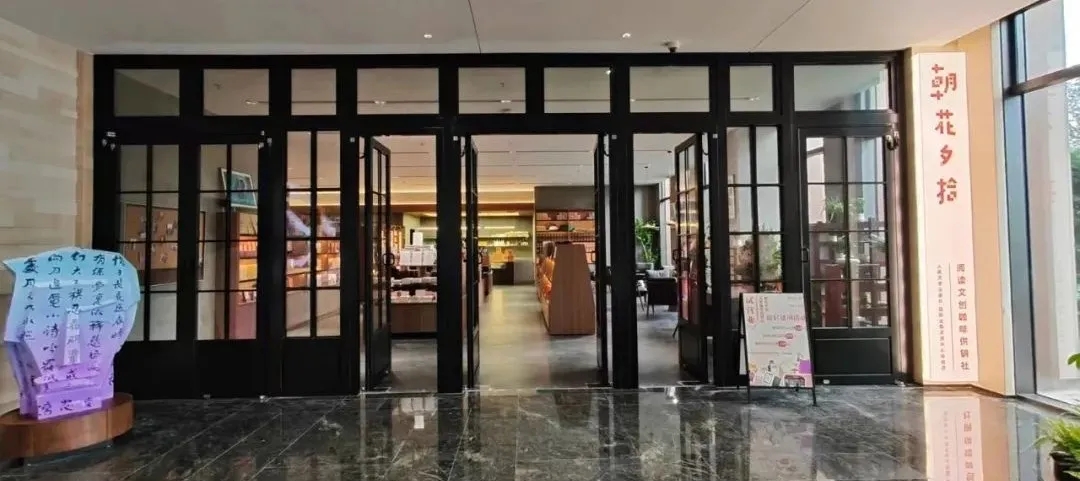 一層右側的朝花夕拾·文創咖啡供銷社率先開業,空間敞亮,更顯古樸雅致。店門口,一套從朝內166搬來的辦公桌椅和書架靜靜陳列,桌上那盞熟悉的綠色玻璃罩臺燈,柔光流淌,瞬間將人拉回朝內166的舊時光——仿佛一切從未改變。