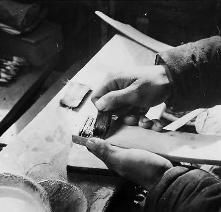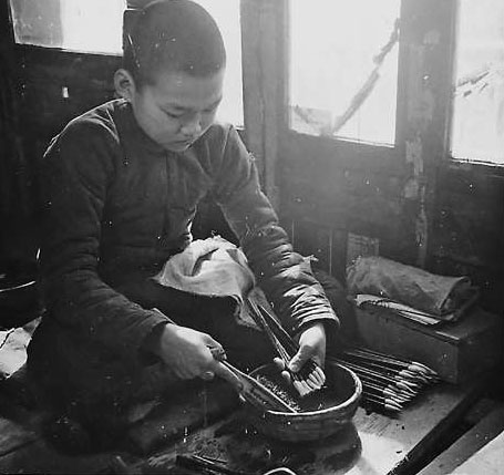 和平門外胡文昇筆莊的師傅們在制作毛筆。