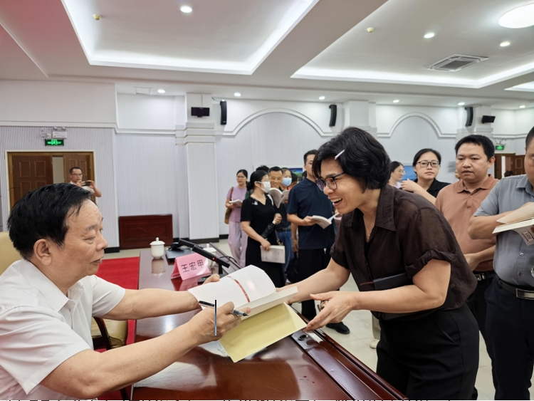 聶震寧、黃詠梅在“壯家歌?!っ夜沧x”閱讀分享會現場(潘劍 攝)