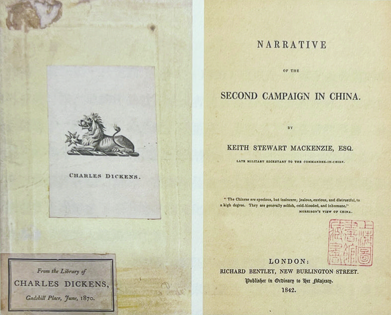 狄更斯的藏書和紋章藏書票(左),徐家匯藏書樓提供