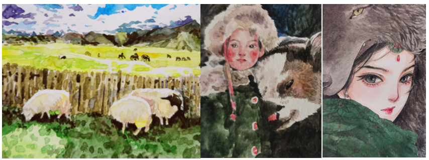 《草原牧醫》中的水彩插畫,作者手繪(部分配圖有臨摹元素)