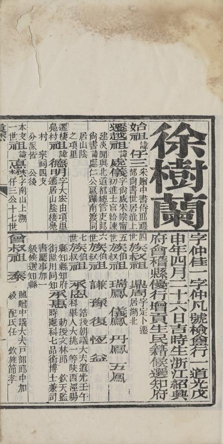 對于人物的年歲,我國古代有兩種計歲法:一是以相距之年計歲(生年計入),即虛歲。一種是以周年增歲(生年計入),即實歲。這種方法大概隋唐以后逐漸為人們采用。(《歷史研究》1991年第4期張培瑜《關于歷史年代計數的規范化問題》)。所以后世學者據薛炳所做《徐樹蘭傳》中言其“光緒二十八年卒,年六十五”推算出兩種生年就不足為奇了。至于朱卷上的道光戊申年,則當為科舉中的官年現象。此不贅述。
