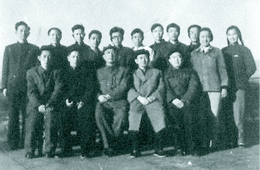 1962年1月,全國高校文科統編教材《中國現代文學史》(唐弢主編)編寫組成員攝于中共中央黨校。前排左起:劉泮溪、劉綬松、唐弢、王瑤、李文保。后排左起:萬平近、嚴家炎、樊駿、吳子敏、許志英、黃曼君、張恩和、蔡清富、王德寬、陳子艾、呂啟祥。