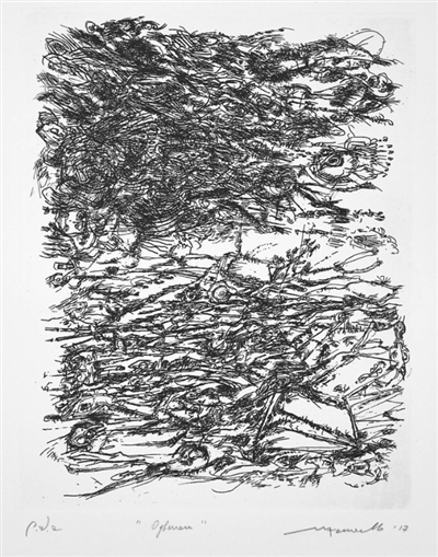今年4月,上海多倫現代美術館舉辦“東西匯夢——中意當代版畫交流展”,將這一藝術形式帶回中國新興木刻運動的發源地。展覽不僅呈現藝術風格的碰撞,更著重展現藝術家對傳統版畫技術的創造性轉化。例如,意大利藝術家馬里奧·托馬塞洛的抽象銅版蝕刻《奧吉納姆》與中國藝術家譚平的套色木刻《無題1》,將傳統版畫技藝轉向純粹抽象表達。前者通過凹版腐蝕線條構建繁雜的無意象畫面,后者則通過富有張力的直線將畫面切割成極簡的幾何形態。兩位藝術家在深入掌握傳統技藝的基礎上,突破版畫原有的敘事功能,轉向對形式、材質和印痕美感的探索,使古老技法煥發出新的生命力。