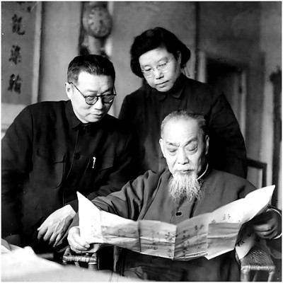 1963年,陳垣(前)、柴德賡(左)、劉乃和在一起。 柴念東提供