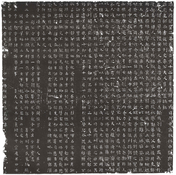 崔芷蘩去世在隋開皇二年(582),又是一個嶄新的時代,由于崔仲方的功績,博陵崔氏再度崛起。崔芷蘩的喪禮很可能是哥哥崔宣猷或侄子崔仲方主持完成。她的墓志尺寸達到驚人的81×82厘米,遠超家族中的男性成員。比如她的叔叔崔孝直的墓志尺寸是73×71厘米,哥哥崔宣度的墓志尺寸為63.5×64厘米。并且,《崔芷蘩墓志》的尺寸極有可能大于《李希仁墓志》。盡管《李希仁墓志》的具體情況尚未刊布,但李希仁的哥哥李希宗的墓志也不過62×62厘米。今已知尺寸最大的北朝女性墓志當屬《魏瑤光寺尼慈義墓志》,為83×84厘米。志主高英生前曾是北魏宣武帝元恪的皇后。換言之,崔芷蘩的墓志大小幾與皇后相近。但是她本人生前未曾得到任何加封,死后也沒有追贈,因此如此“異?!钡某叽缰挥锌赡艹鲎詥始宜饺诵袨?。也許是因為崔仲方新朝權貴的地位,也許是崔宣猷出于對最后一位姊妹的痛悼,《崔芷蘩墓志》才呈現出如今面貌。