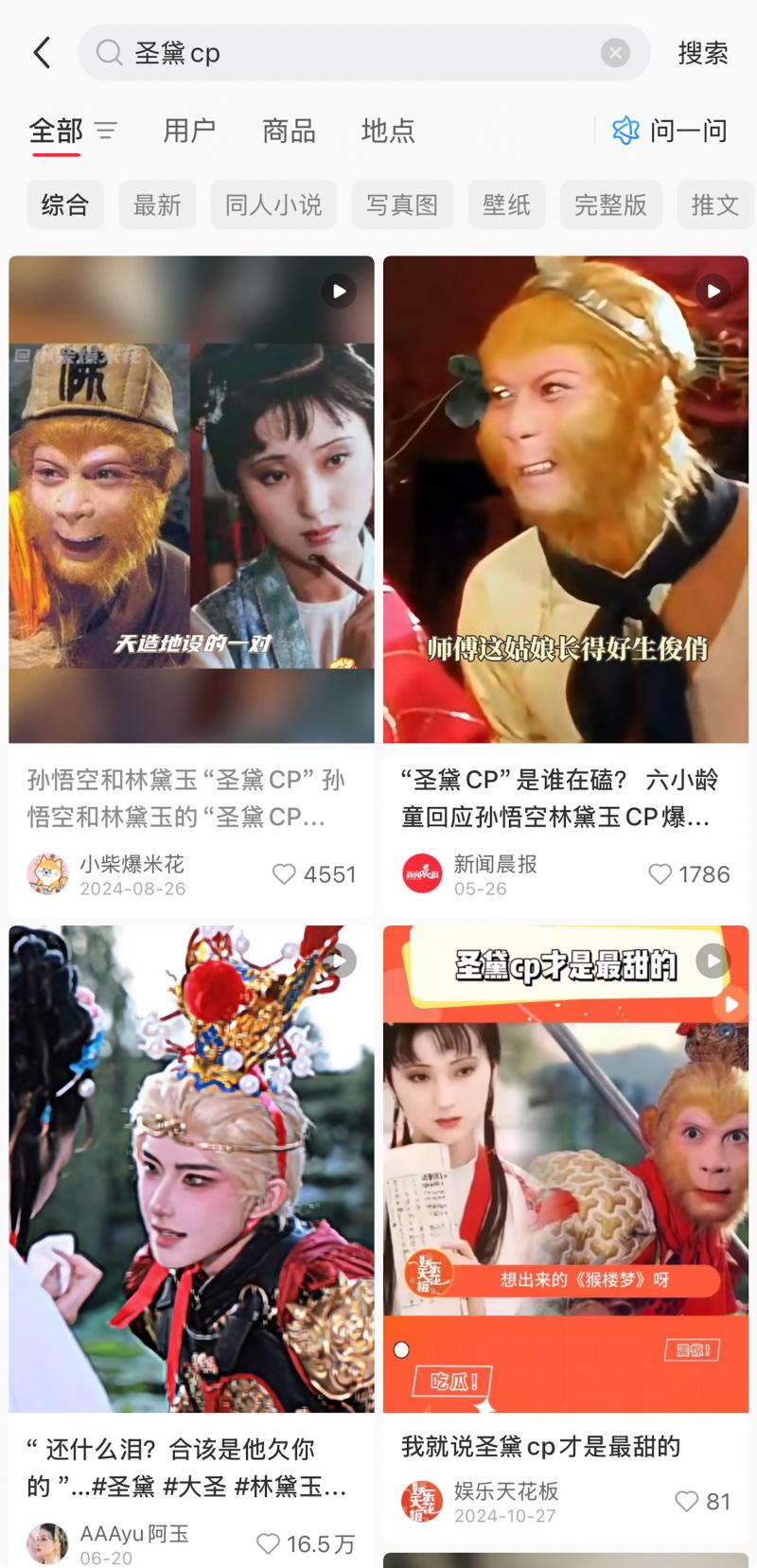 早在今年上半年,“圣黛CP”這個奇特的稱謂忽然在互聯網上流行起來。有網絡博主將《西游記》里的孫悟空與《紅樓夢》里的林黛玉湊成一對情侶。這個新穎而奇怪的組合迅速吸引了廣大網友的注意力。對此,有媒體記者就相關內容詢問86版《西游記》孫悟空扮演者六小齡童,他給出了較為正面的反饋,再次拉高了“圣黛CP”的熱度。有網友戲稱,曹雪芹和吳承恩去世多年后,發現居然成親家了。