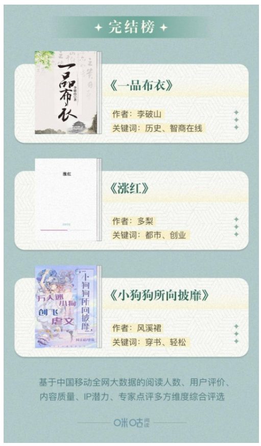 文化質感與思想厚度兼具 ,咪咕“悅讀好書榜” 第八期彰顯網文創作深度