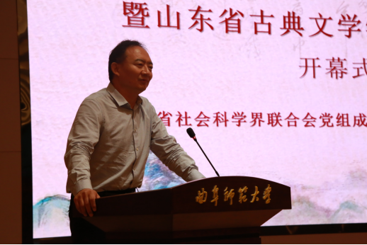 8月16日上午,大會舉行開幕式。曲阜師范大學黨委常委、副校長李兆祥,山東省社會科學界聯合會黨組成員、副主席楊宗杰,山東古典文學學會會長、山東大學一級教授、《文史哲》主編杜澤遜,山東省古典文學學會副會長、山東師范大學文學院教授石玲先后致辭。開幕式由曲阜師范大學文學院黨委書記左興才主持。