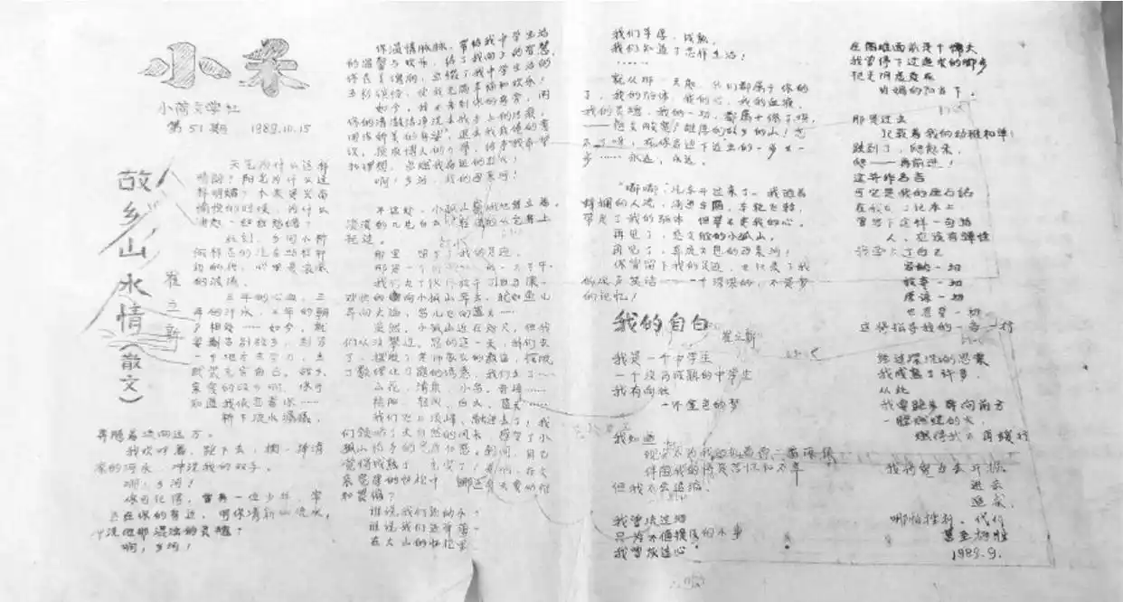 文學的生長從不止于個體。1985年,作家趙清余在尚志紅軍學校創辦了“小荷文學社”,編印社報《小禾》?!爱敃r《小禾》是半月一期的8開作文報,學生自籌一張白紙,印作文之后,再發回去?!薄缎『獭窂目贪嬗陀〉饺缃竦牟噬∷?,40年來在一代代老師的傳承接力下,出版了318期,為無數孩子撒下了文學的種子,放飛了最初的文學夢想。