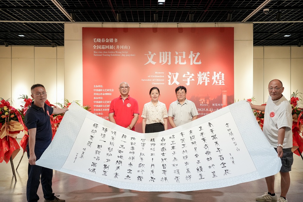 2025年8月21日至25日,毛曉春金錯書全國巡回展井岡山展在井岡山革命博物館舉行。值此中國人民抗日戰爭暨世界反法西斯戰爭勝利80周年之際,本次展覽開幕式以深刻緬懷革命先烈,傳承井岡山精神,彰顯了深厚的歷史文化內涵與時代意義。