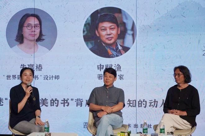 8月22日晚,在南京世界文學客廳,江蘇鳳凰美術出版社特邀作家申賦漁與書籍設計師朱贏椿,圍繞兩人13次合作歷程及其中國“最美的書”獲獎作品,展開一場關于“文學與藝術碰撞”的深度對話?;顒佑山K鳳凰美術出版社副總編輯朱婧主持。
