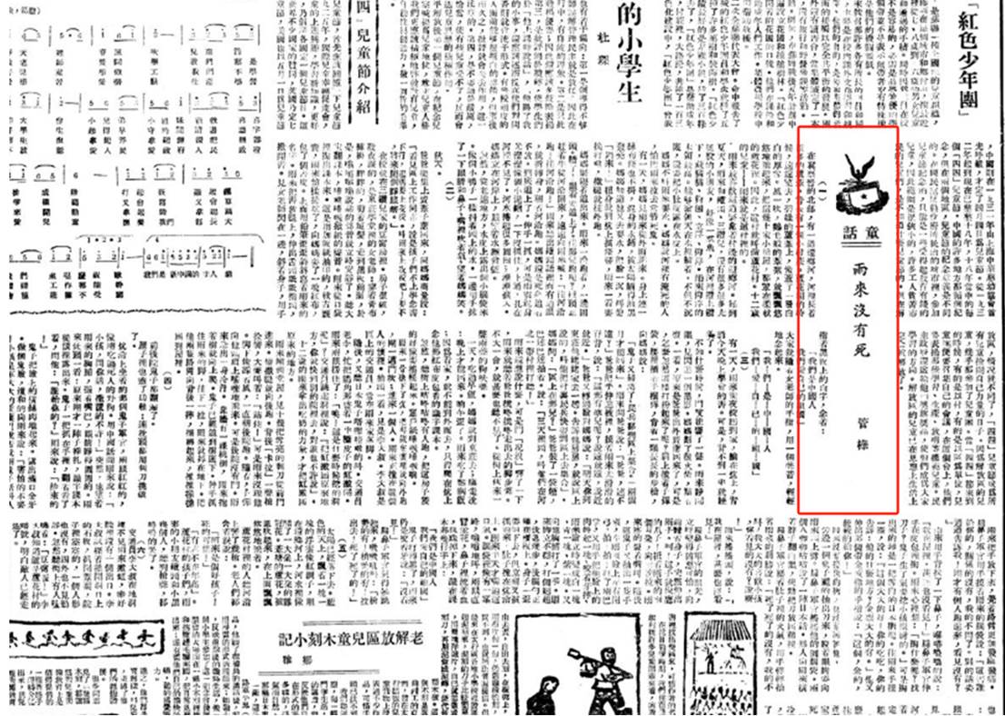管樺《雨來沒有死》,1949年4月4日《人民日報》第4版