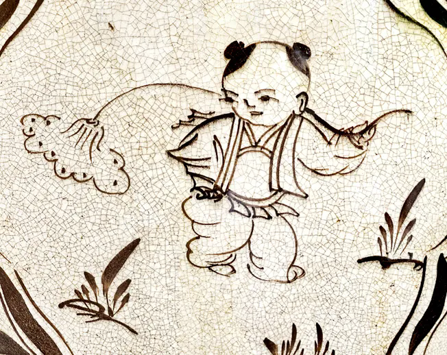 宋《白地黑彩繪持蓮童子紋梅瓶平面圖》局部
