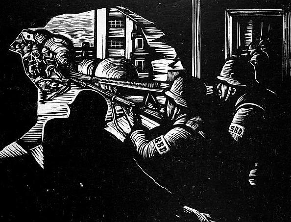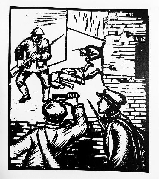 陳煙橋《巷戰》(黑白木刻,1932年)