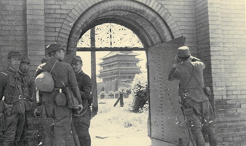 這時的北平,卻還沒有顯露出勝利的氣氛。這座古老的都市,畢竟還在日偽的統治之下。就像老舍先生在《四世同堂》里描述的那樣:“在重慶,成都,昆明,西安和別的許多城市里,人們嚷呀,唱呀,高興得流著眼淚;北平可冷冷清清。北平的日本兵還沒有解除武裝,日本憲兵還在街上巡邏?!?/p>