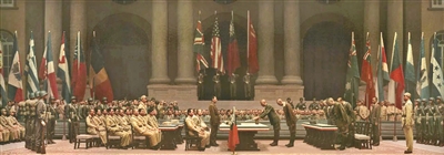 正在中國美術館舉辦的“人民必勝——紀念中國人民抗日戰爭暨世界反法西斯戰爭勝利80周年美術作品展”中,陳堅的油畫作品《公元一千九百四十五年九月九日九時》,描繪了1945年9月9日9時在南京中國陸軍總部舉行的日軍投降儀式,再現了中國戰區受降的歷史場景。