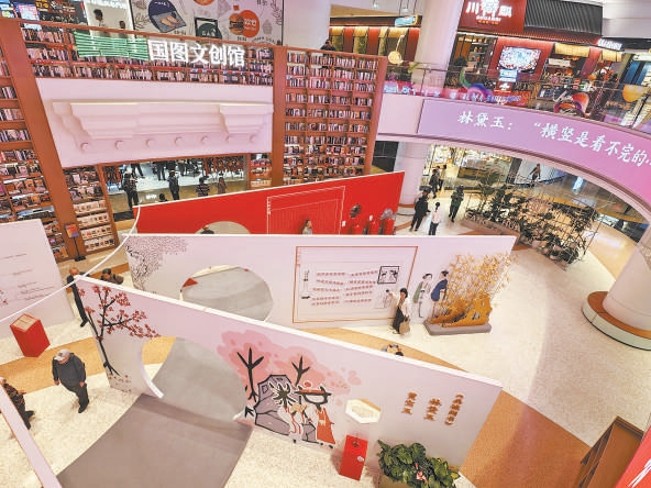 以典籍文創為媒介、以沉浸式體驗為路徑,將傳統人文底蘊巧妙融入現代商業場景,19日,國圖文創館(魏公·芳華里店)開業。
