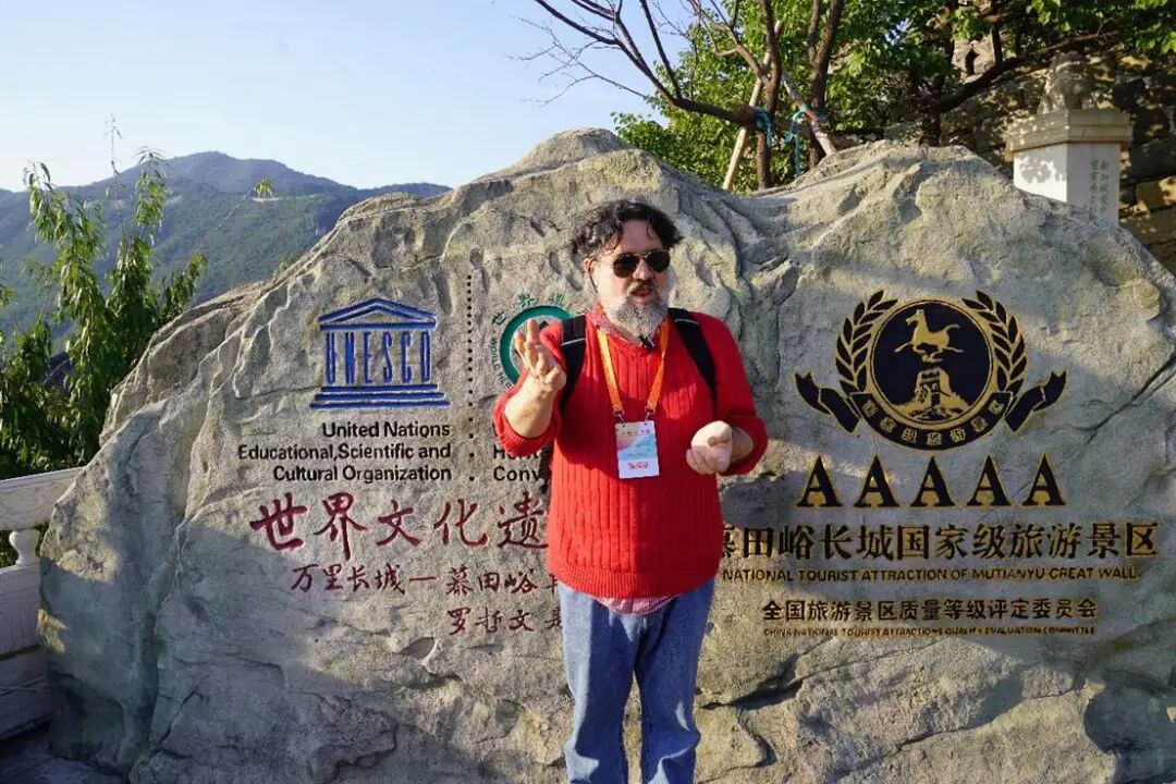 傍晚漫步慕田峪,夕照將整段長城點染成金色,遠處層層疊疊的松濤和近處烽火臺的剪影一同激活了史詩的聲音。身臨此地,阿根廷詩人馬克西米利亞諾·萊尼亞尼心中激蕩著難以自抑的澎湃情感。他說,長城是他窮盡一生夢寐以求的少數幾個地方之一,自收到中國之行的邀請函起,他便不斷追問這個抵達長城的夢想何時能成為現實。而今,夢想終于成真,馬克西米利亞諾·萊尼亞尼感受到了這片土地上散發的能量、呼吸的歷史,他認為,這完全詮釋了“史詩”的真諦——“人類歷史上所有史詩創作都以此為源泉。此刻我們既能追思中國詩人的瑰麗詩篇,也能遙想阿根廷詩人書寫東方傳奇的壯美文字?!痹陂L城上,馬克西米利亞諾·萊尼亞尼和中外詩人們從荷馬史詩聊到博爾赫斯,尤其是后者,這位被拉美、中國乃至全世界作家反復引述的文學巨匠,正是他最早用中華文明的史詩意境與源遠流長的神秘魅力,為阿根廷讀者開啟了認知的窗扉?!敖袢?,我終于得以親身體驗這份傳奇?!瘪R克西米利亞諾·萊尼亞尼說道。