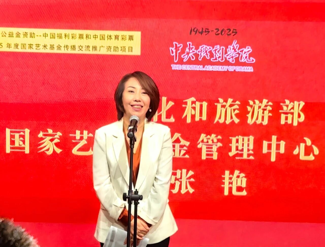 張艷在致辭中談到,此次展覽通過舞臺美術的視角展現抗戰題材優秀劇目,既還原了先輩浴血奮戰的壯闊歷史,也為抗戰精神賦予了當代藝術升華與美學詮釋。它以歷史為底色、藝術為橋梁,尤其能喚醒青年一代對歷史的思考,讓人們在藝術熏陶中汲取奮進力量,堅定珍愛和平、開創未來的信念,是國家藝術基金服務社會、傳承精神的生動實踐。